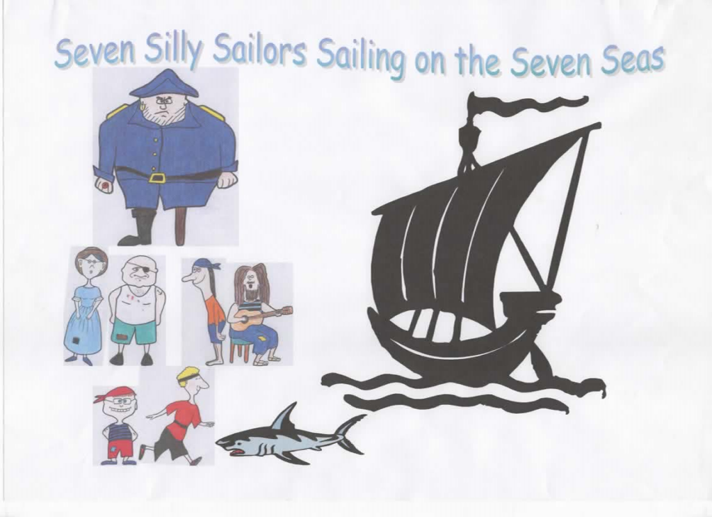 Once upon a time there were seven silly sailors sailing on the Seven Seas. One by one they fell overboard until there were none!